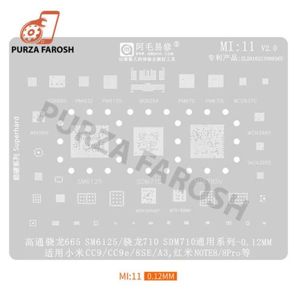 Amaoe Mi11 0.12MM BGA Stencil IC Solder Reballing Tin Net for Xiaomi CC9/CC9e/A3/Redmi NOTE8 SM6125/SDM710 CPU