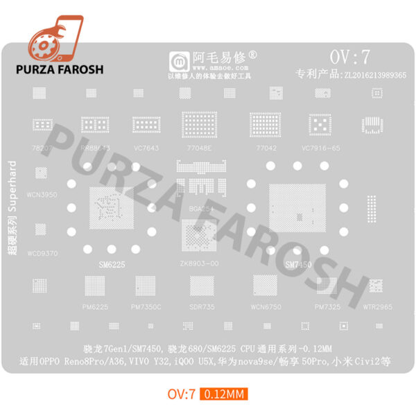 AMAOE OV 8 BGA REBALLING STENCILS FOR OPPO/VIVO : 0.12MM