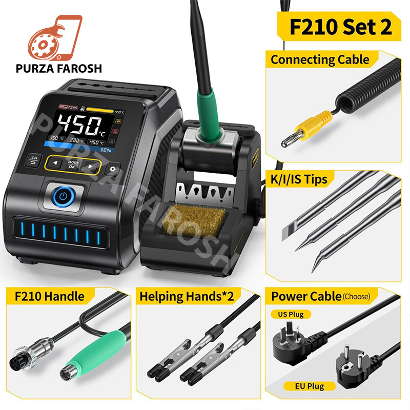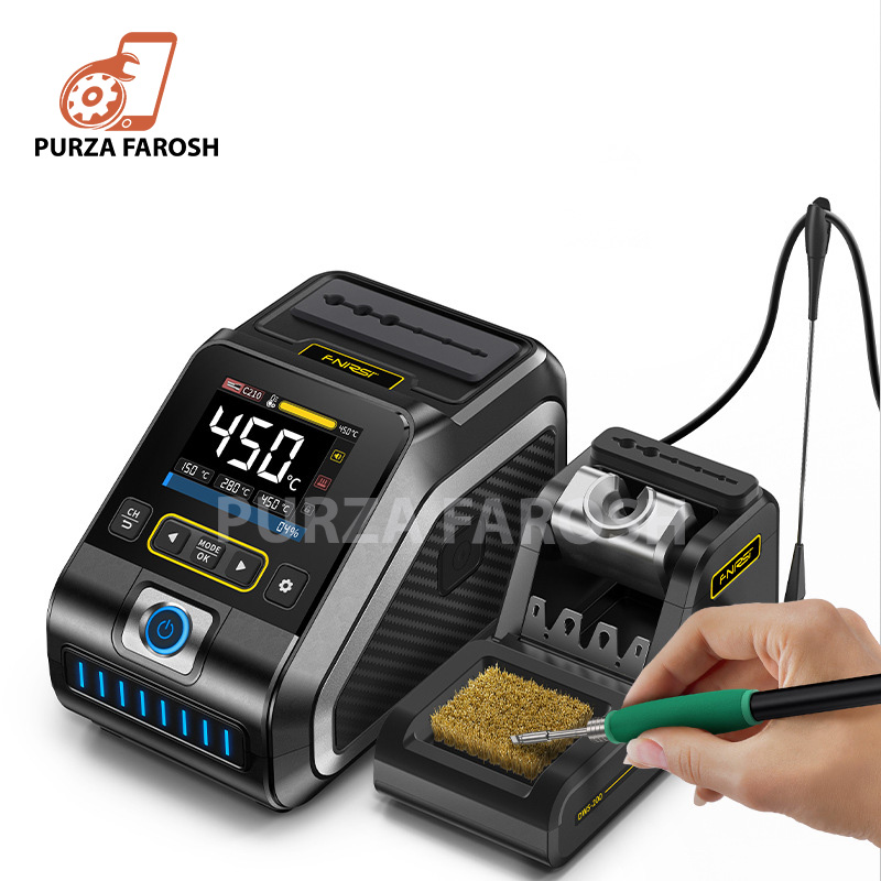 DWS-200 is a 200W high-power precision soldering station launched by FNIRSI. It is a commonly used hand tool in electronic soldering processes. This product has a built-in high-power pure copper transformer, suitable for 100-240V voltage input, with a maximum power of 200W. Supports conversion from ℃ to ℉, adjustable temperature range 100℃~450℃/212℉~842℉. It also supports preset 3 sets of temperature values and can be connected to a soldering iron stand for standby induction. Use dynamic temperature curve mode to try monitoring data.