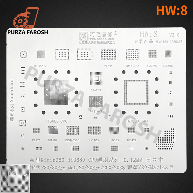 Amaoe HW8 CPU Universal Reballing Stencil for Huawei Mate20 20Pro 20X 20RS Mate X Honor V20 Magic2 for Kirin980 HI3680 CPU