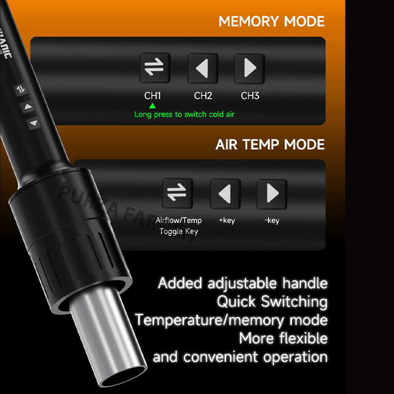 Roc segmented temperature control mode: Supports three memory channels (CH1/CH2/CH3), allowing easy setting of temperature, air volume, and time to meet different process requirements