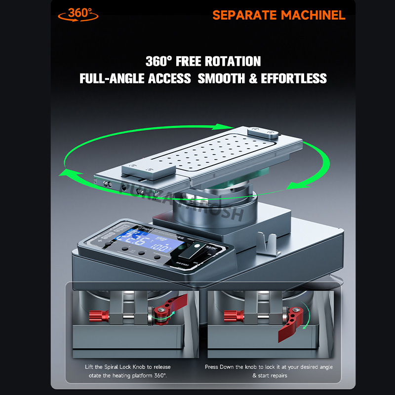 360° free rotation, adjust the separation angle at will easier to separate the screen, accurate separation without damage, not affect the air pump adsorption effect