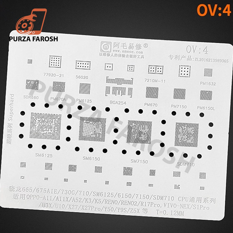 AMAOE OV 8 BGA REBALLING STENCILS FOR OPPO/VIVO : 0.12MM